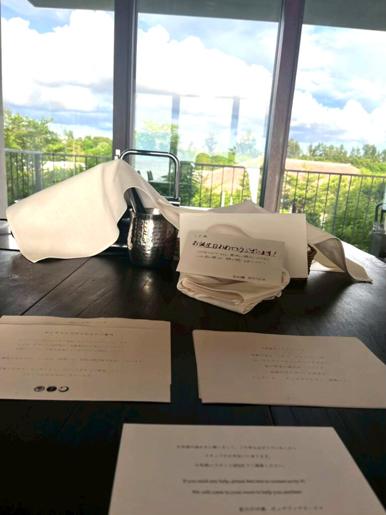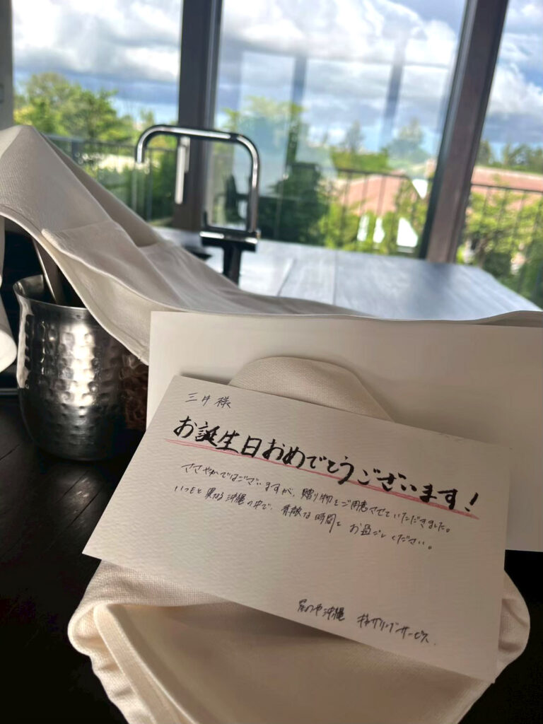 それなのに予約情報の生年月日を見て、星のや沖縄の方が「とる」の誕生日だと気付き、サプライズでメッセージカードとプレゼントを一緒につけてくれていました!