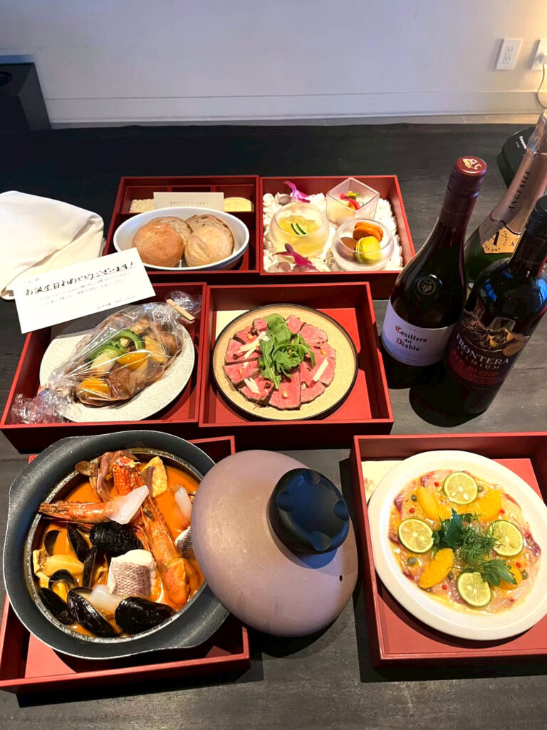 「まみとる」はせっかくなので部屋で食事をしたいので、ギャザリングサービスの洋食を頼みました!