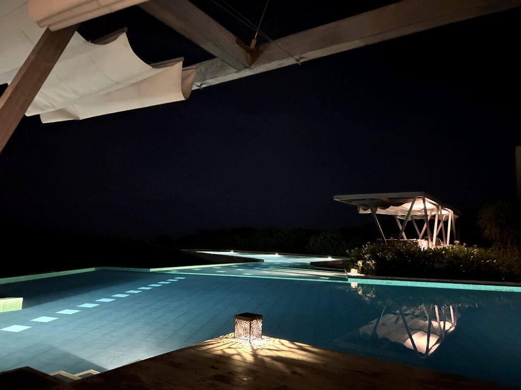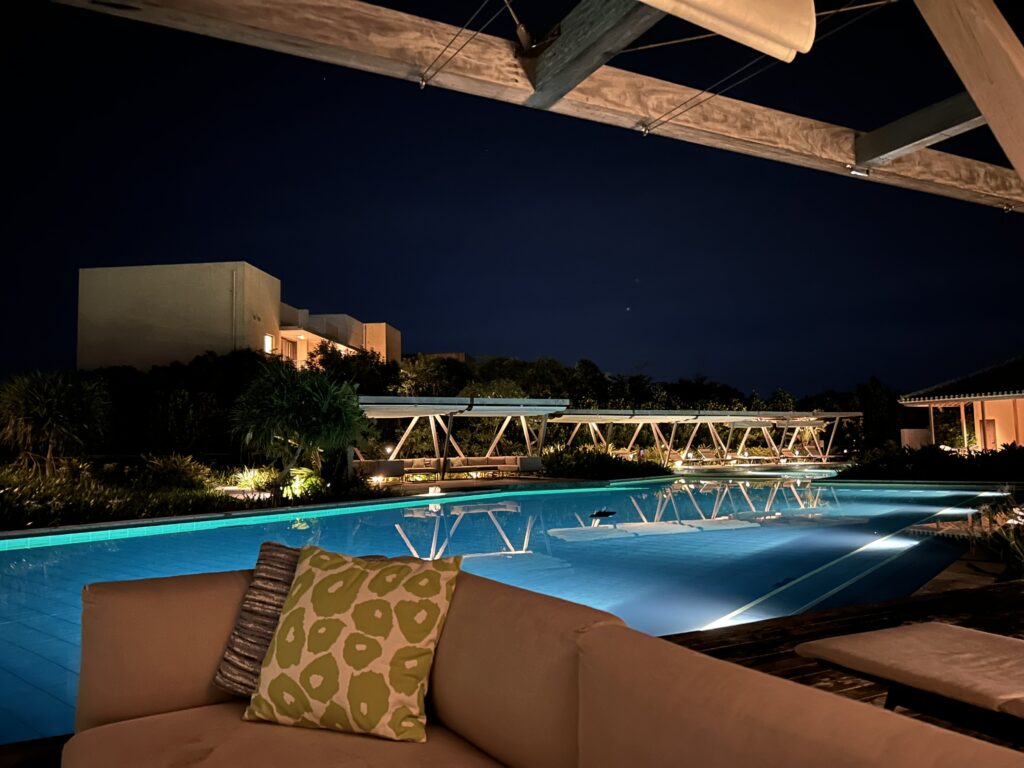 プールは温水なので夜も入れるのですが、「まみとる」は夜はプールに入らず、プールサイドでまったり琉球古典音楽を聴いてました。夜のプールの景色は幻想的でものすごく良かったです!