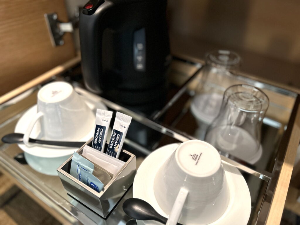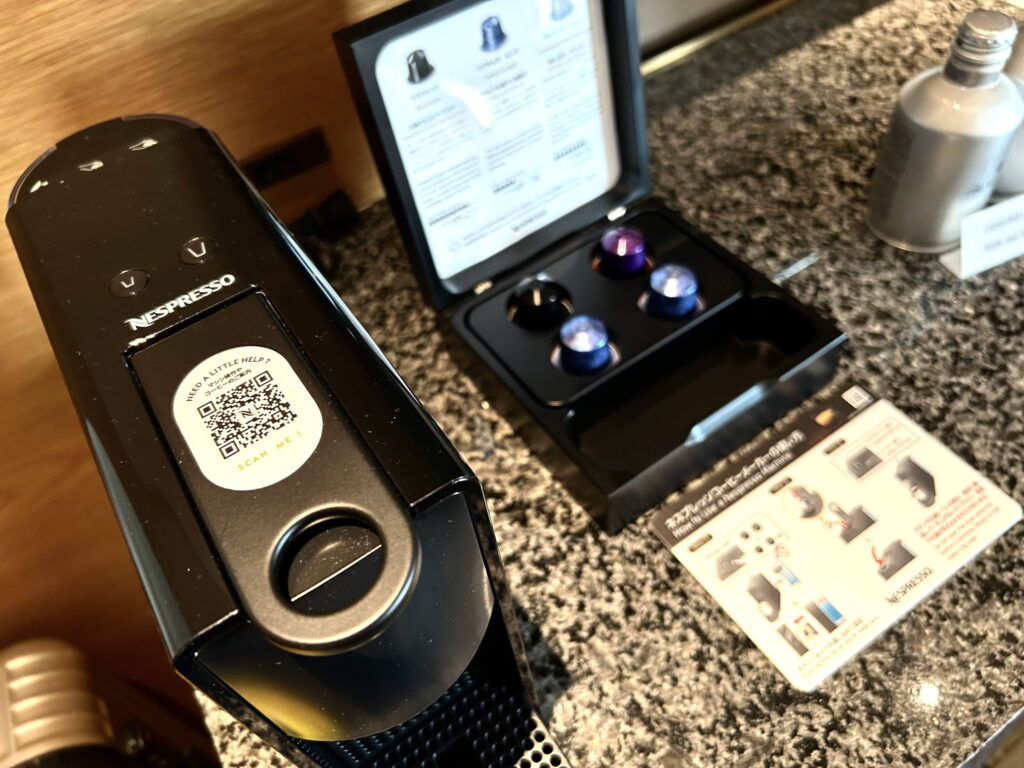 「まみとる」はコーヒーが大好きなのですが、後ほど後述するフードプレゼンでも美味しいコーヒーが飲めたので、今回客室でコーヒーを飲むことはありませんでした💦