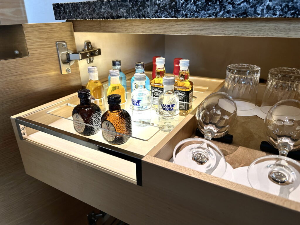 ※アルコール類とおつまみは有料とのことですが、ソフトドリンクがフリーなだけでも「選ばれたゲスト」としての特別感を味わえます。(ソフトドリンクは飲めない分は持ち帰ってもOKとの説明もありました。)