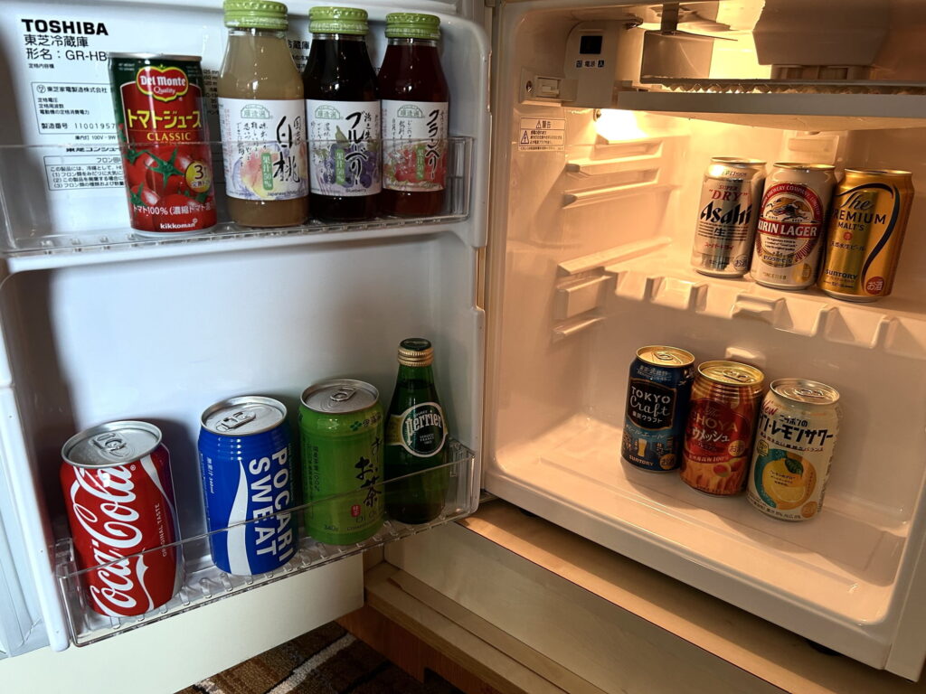 冷蔵庫の中身ですが、禅はここから違います。 なんと、冷蔵庫内のソフトドリンクはすべて無料だそうです!