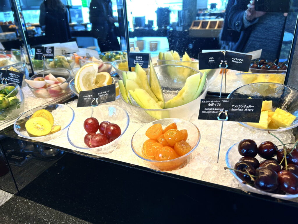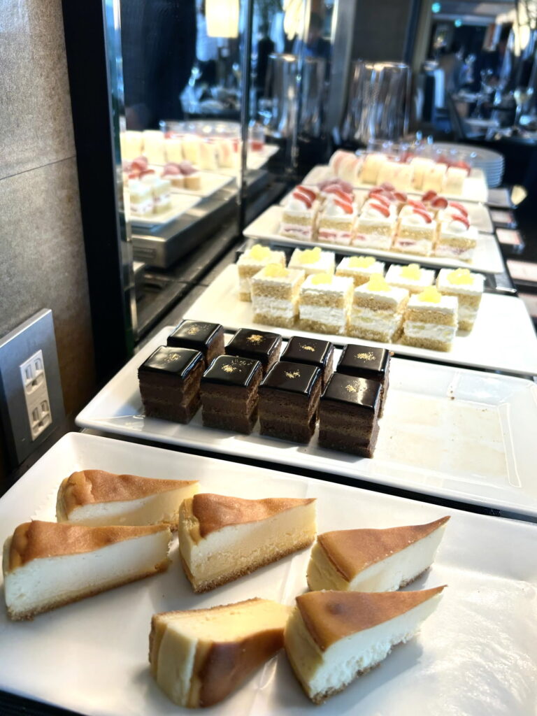 パティスリーSATSUKIの「スーパーショートケーキ」など、1個数千円するケーキが、ビュッフェサイズで贅沢に並んでいます。