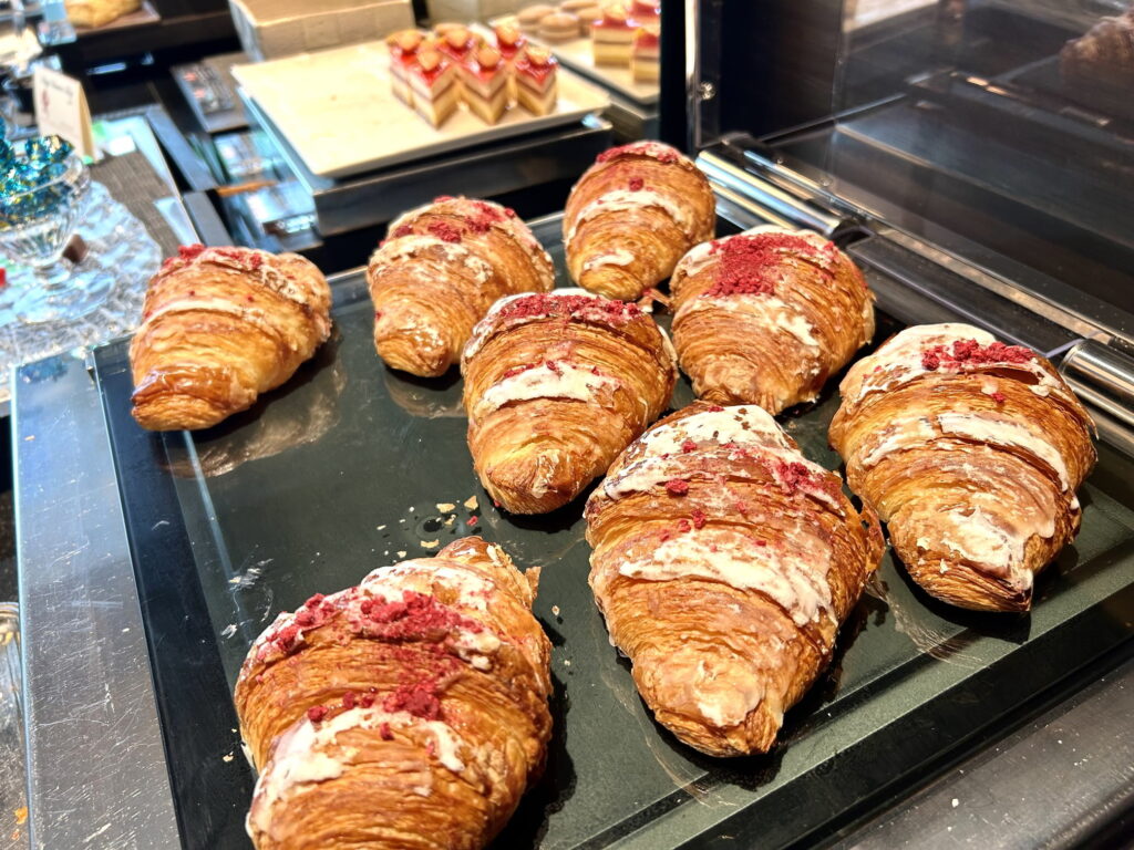 ピエール・エルメの「クロワッサン・イスパハン」も目を惹きますね!大きいサイズなので「まみ」と半分にして分けました!