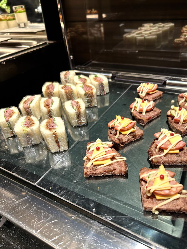 ローストビーフサンドウィッチ、タパス、鰻の巻き寿し、などなどとりあえずお皿に盛りました!