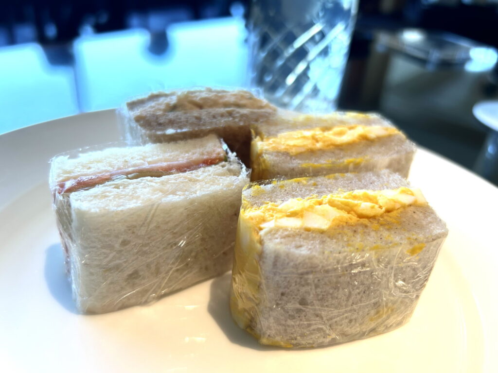 お腹がいっぱいで苦しい中、ランチにしかないメニュー「太陽卵のサンドウィッチ」は食べておきたい!ということでサンドウィッチだけ食べて、あとはコーヒーと、最後にまた白州のハイボールを。