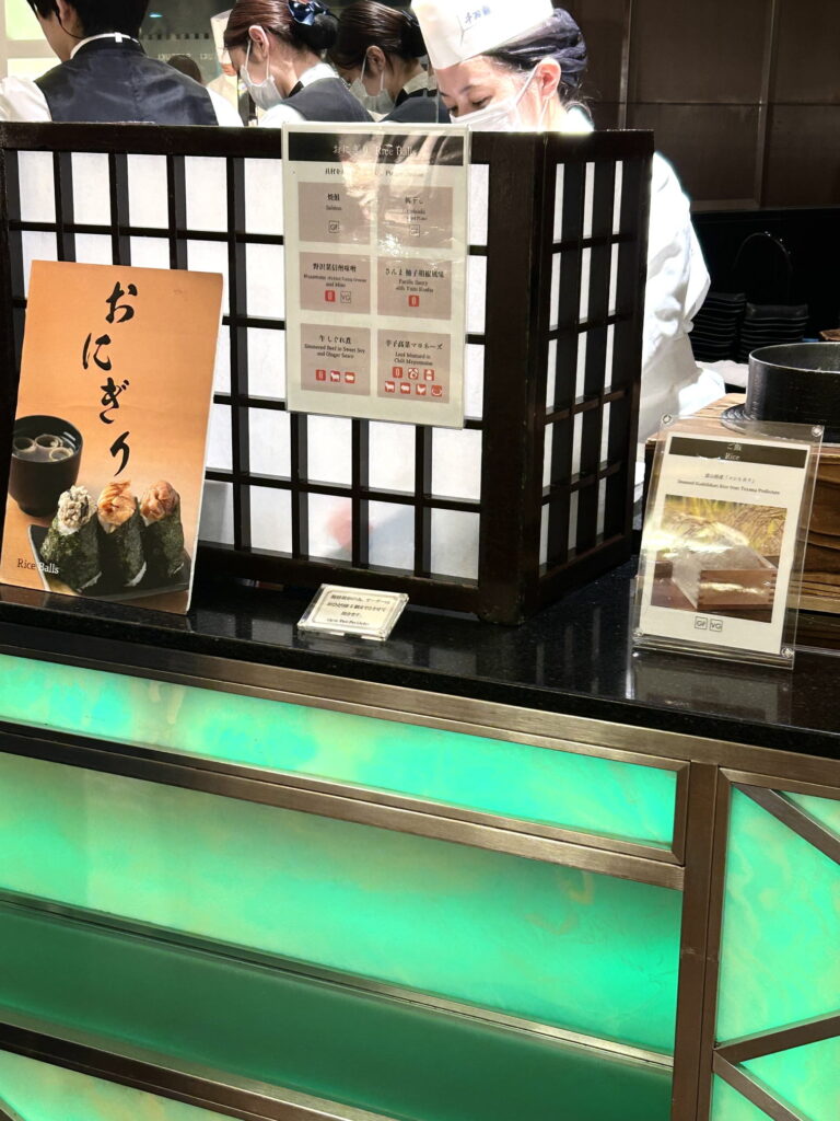 おにぎりは具を選ぶと握ってもらえます。「とる」は「さんま 柚子胡椒風味」の具で握ってもらいました。