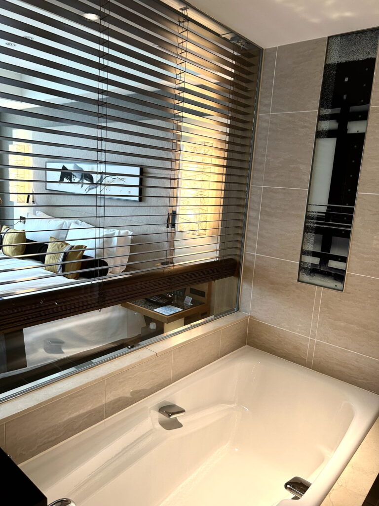 バスルームは鏡張りで部屋のベッドから中が見えるのですが、恥ずかしがりの「まみ」は速攻で木製ブラインドを閉めてました(笑)。ちなみのこの木製ブラインドはシャワールームの中からボタンで開け閉めできるようになっています。