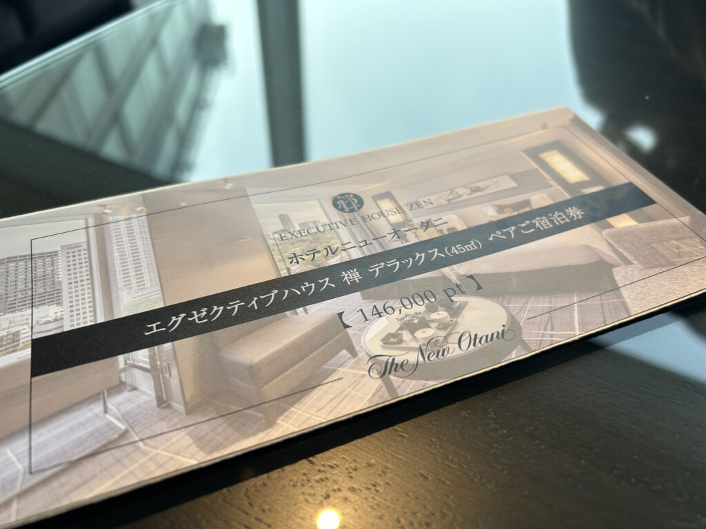 商品は5,000以上ある中で、「とる」は146,000ポイントで交換できる【ホテルニューオータニ エグゼクティブハウス 禅 デラックス宿泊 ペア1泊ご宿泊券】に注目しました。