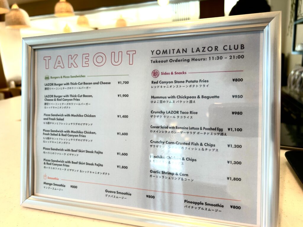 せっかく部屋が良いのでテイクアウトをして部屋でゆっくり食べたいなと思ったのですが、テイクアウトできるメニューは限られているとのこと。