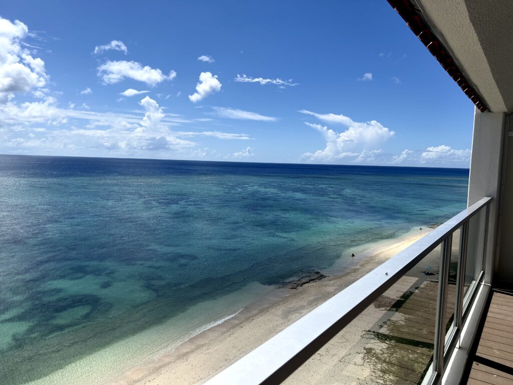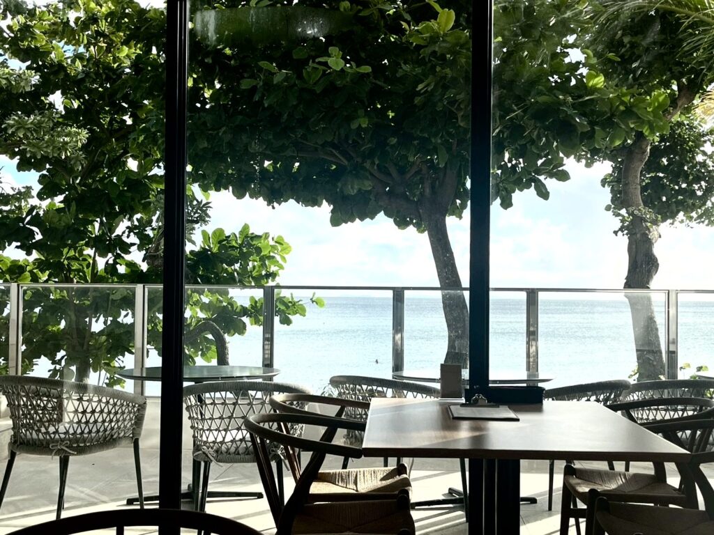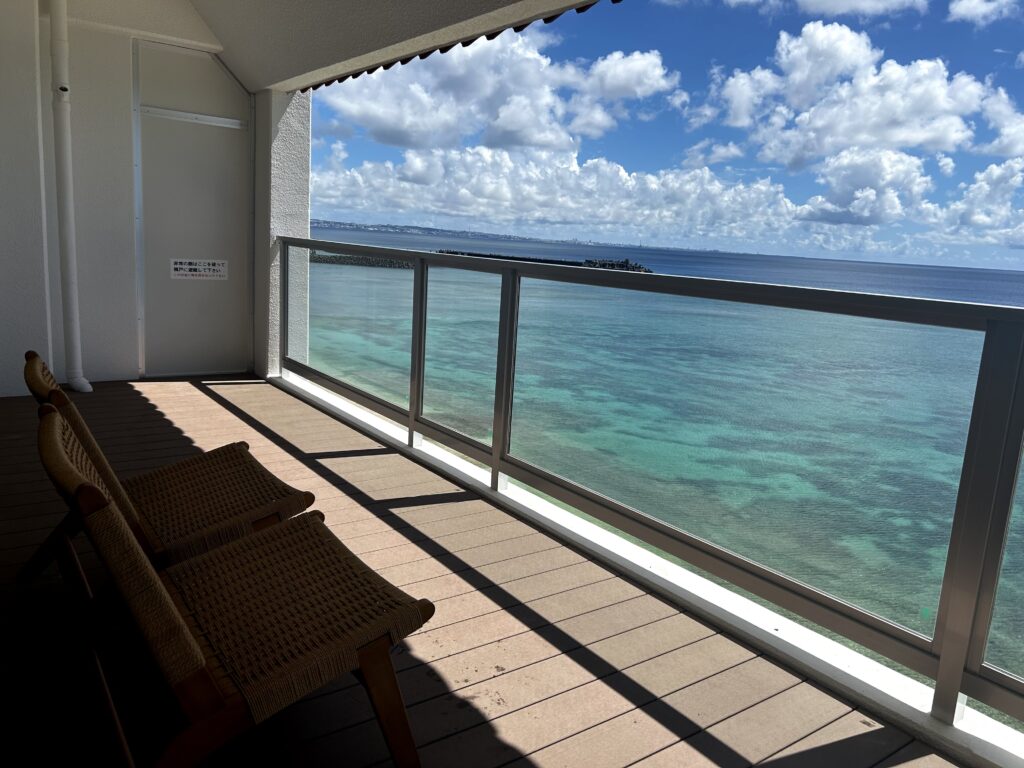 ベッドの前の窓を開けてテラスに出ると目の前のビーチが絶景です!