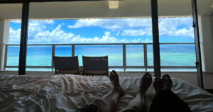 【S CLASS】と【A CLASS】はベッドが窓の手前にあったので、目の前がオーシャンビューでしたが、【B CLASS】は窓から離れて設置されています。
