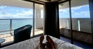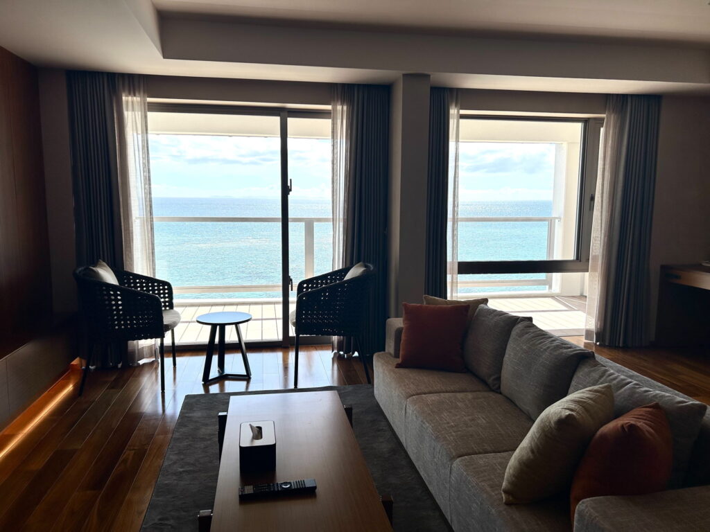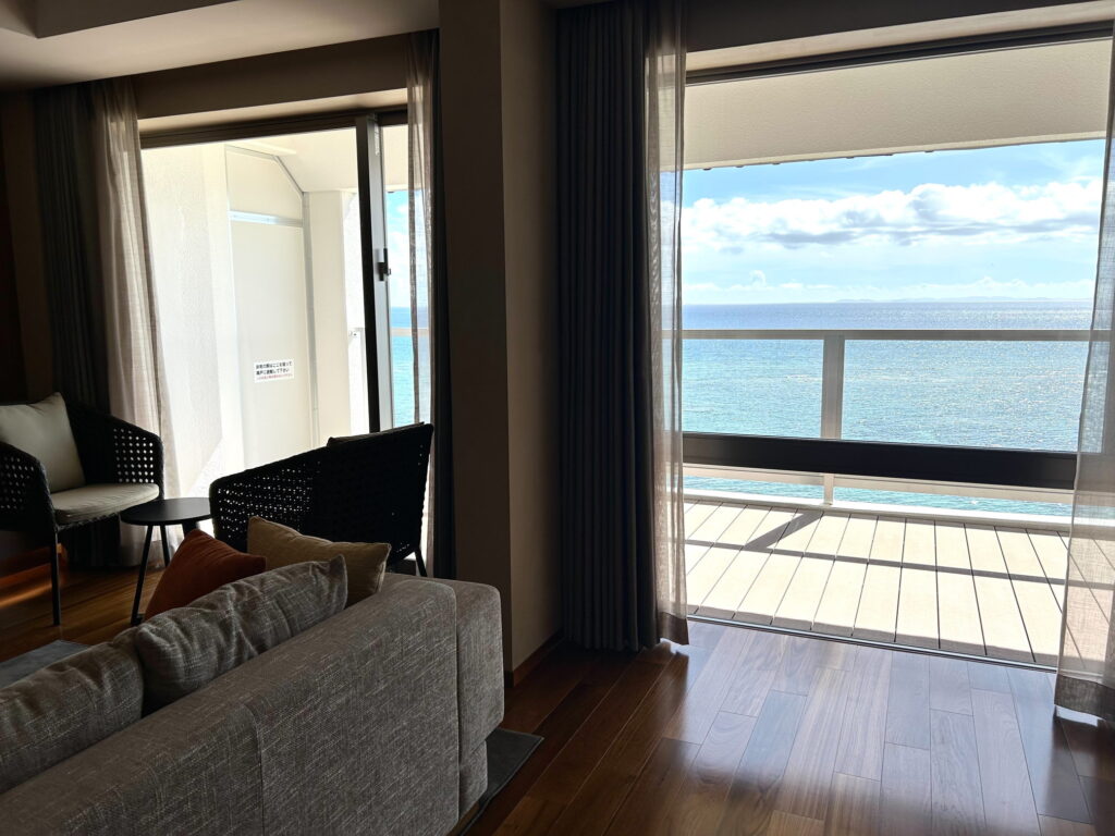 【B CLASS】ならではの特徴として、部屋がコンパクトな分、窓を開けるとソファに座っていて外から波の音がとても大きく聴こえる気がして心地よかったです!