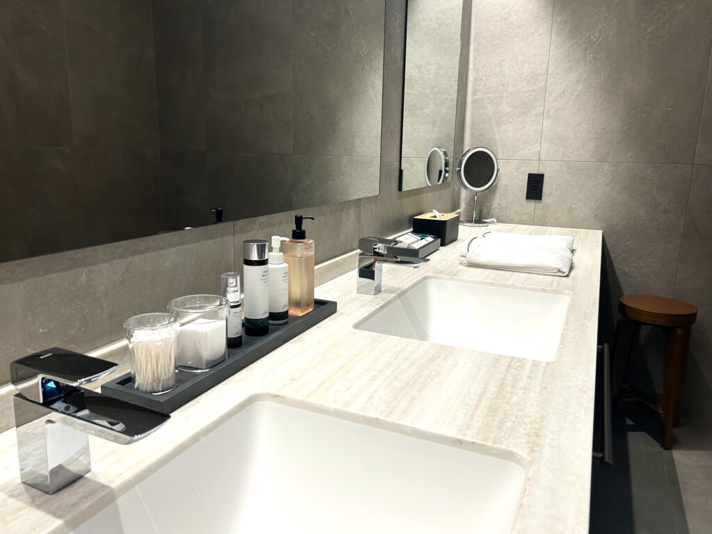 バスルームは材質など含めて雰囲気が【S CLASS】や【A CLASS】とは違いました。